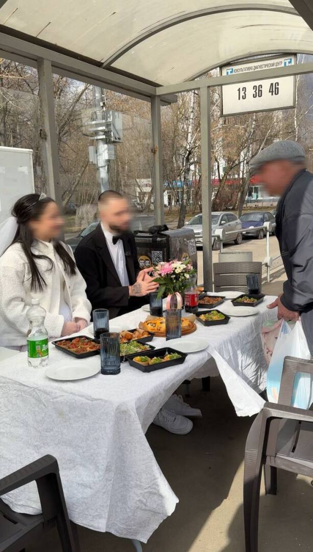 💍 Молодожёны из Москвы решили отметить свадьбу на остановке недалеко от станции Бульвар Рокоссовского.