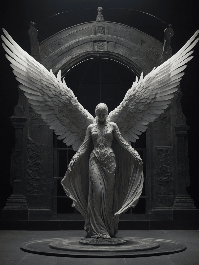 "Imagine Lucifer, the angel fallen from grace, not merely as a solitary figure, but as a conductor orchestrating the passage of souls in a grand cosmic symphony. Picture a hyper-realistic scene where Lucifer stands at the threshold between worlds, surrounded by an ensemble of souls in various states of transition. Each soul carries its own story and emotion, depicted with intricate detail and depth. Against a backdrop of swirling cosmic energy and celestial bodies, the composition invites viewers to ponder the interconnectedness of life and death, fate and free will, in a visually captivating and emotionally resonant tableau."