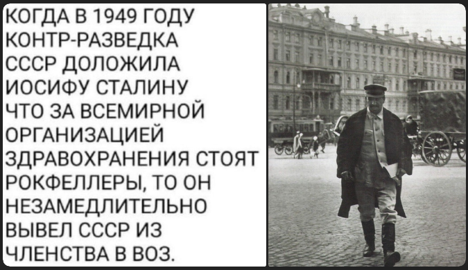 СССР вышел из Всемирной организации здравоохранения в 1949 г. Официально были озвучены две причины: