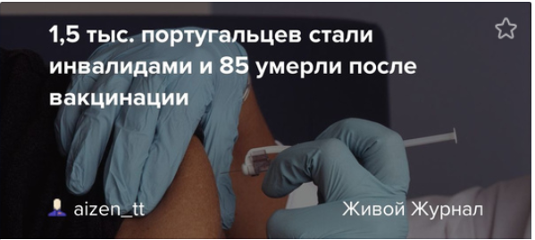 Миллионы смертей, не от Ковида, от жижи, которую впаривала эта гнилая на сквозь контора, которая потом, поджав хвост сообщила, ой простите ошибочка вышла... и отзвуки жижи до сих пор ещё отзываются ввиде внезапных смертей, потери зрения и других неприятных вещей.