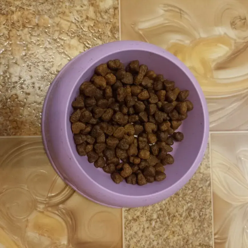 Сухой корм. Он идет, как закусь. Собаки не едят его полноценно, как другие. Такой плошки хватает на неделю. Цена 500 рублей за кг. На месяц выходит около 1,5 кг.