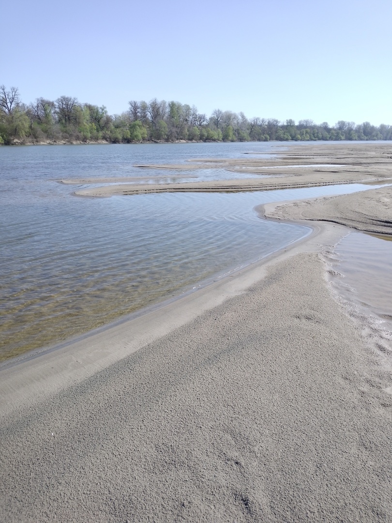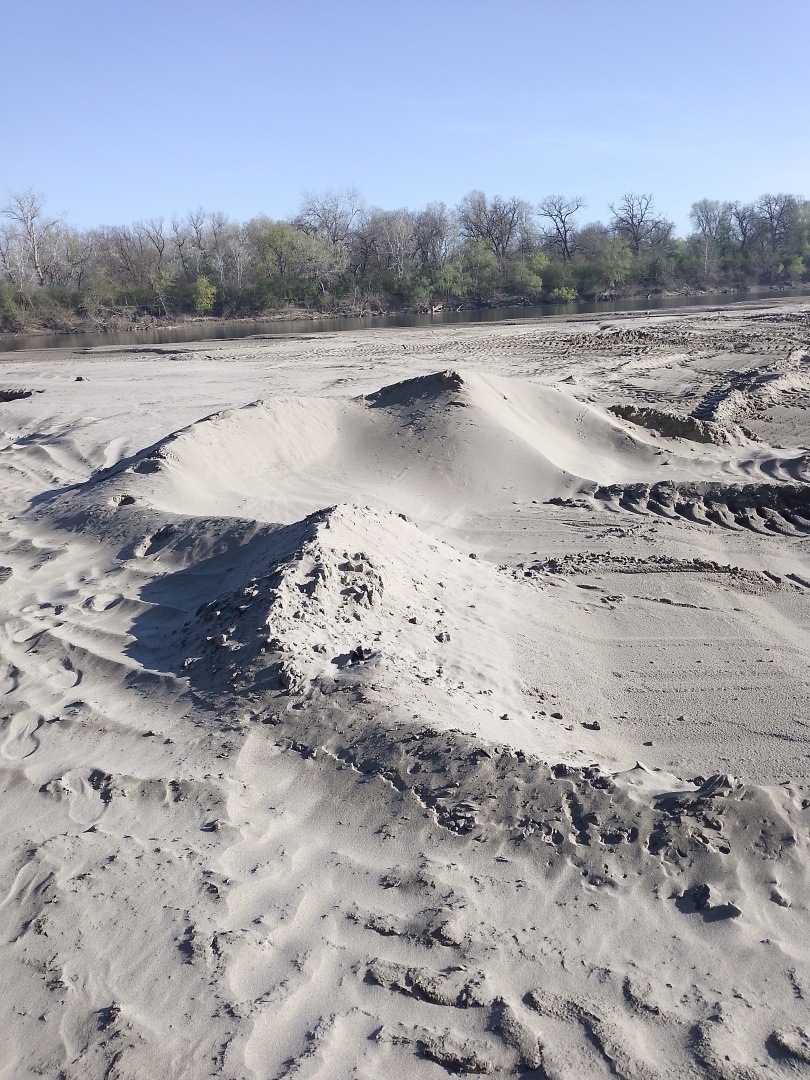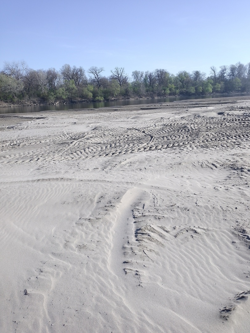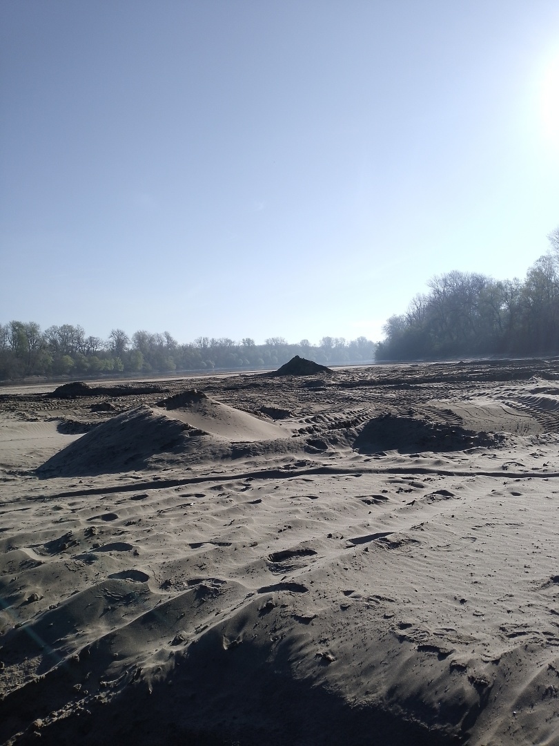 Когда мы приехали на место, мы обнаружили, что вода в реке почти полностью ушла. Видимо шлюзы открыли, и это привело к тому, что река превратилась в песчаную пустыню.