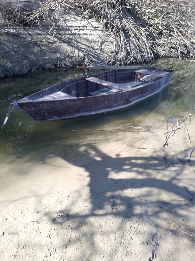 Кстати на воде стояла чья-то лодка, кто-то видимо по реке ещё перебирается, не смотря на то что воды очень много ушло.