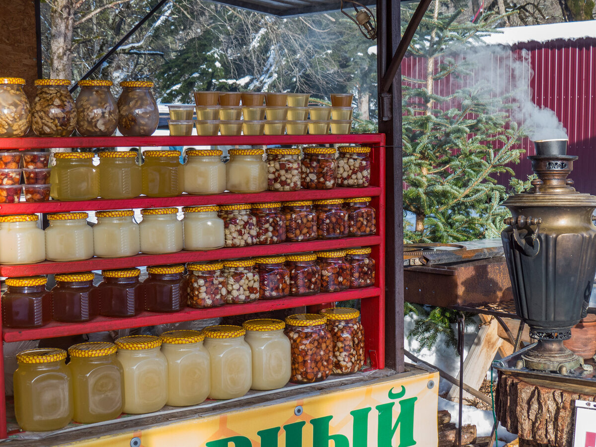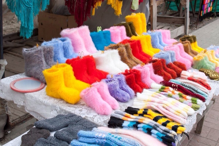 Внизу у дороги огромный рынок. Можно купить местные сувениры: всем известный адыгейский сыр во всевозможных вариациях (обычный, копченый, с травами, разноцветный), одежду из овечьей шерсти, шкуры, кубки, магниты, местный мед, папахи и много-много еще чего. Опустошив свои кошельки, купив сыра и сувениров себе и на гостинцы, мы двинулись к панорамной точке Даховской.