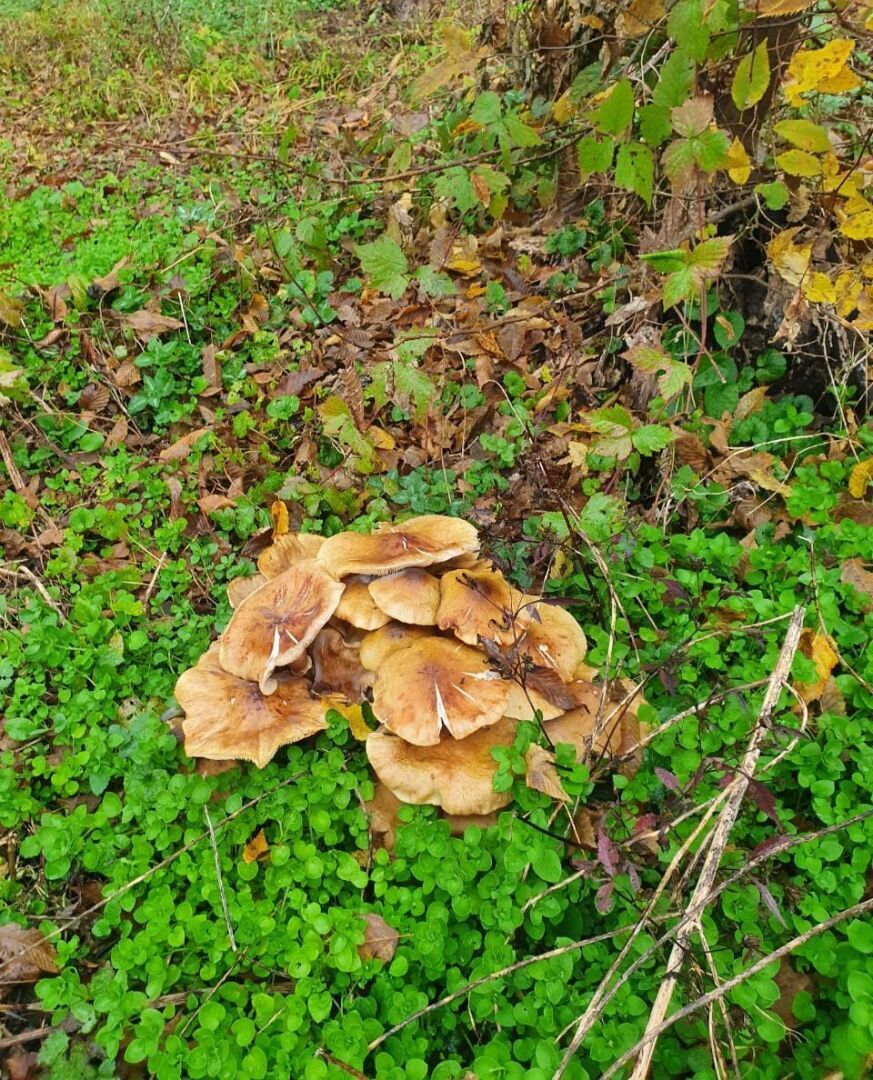Спускались мы не по тропинке, а пошли через лес. Не спеша, загребая и шурша листьями, спускались вниз. Нашли грибы.