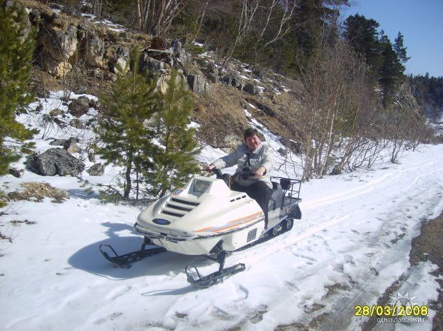 На следующий день вышли осмотреться. А там даже снегоходы стоят. За рулем посидела.