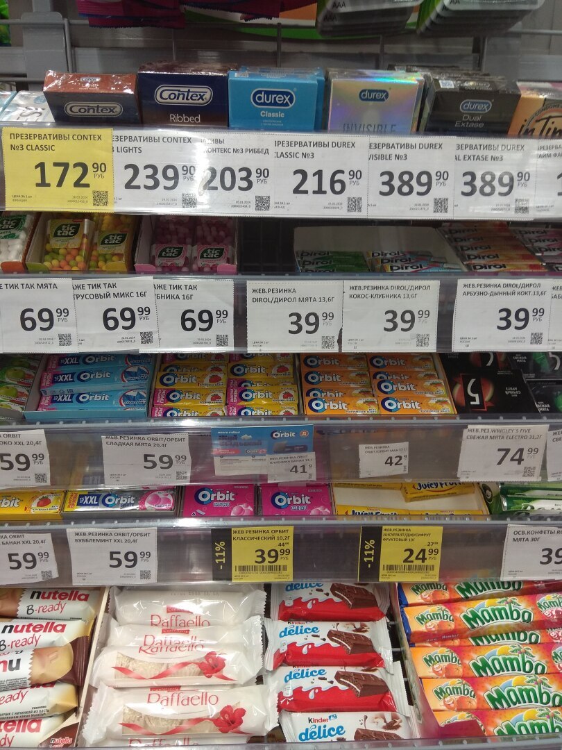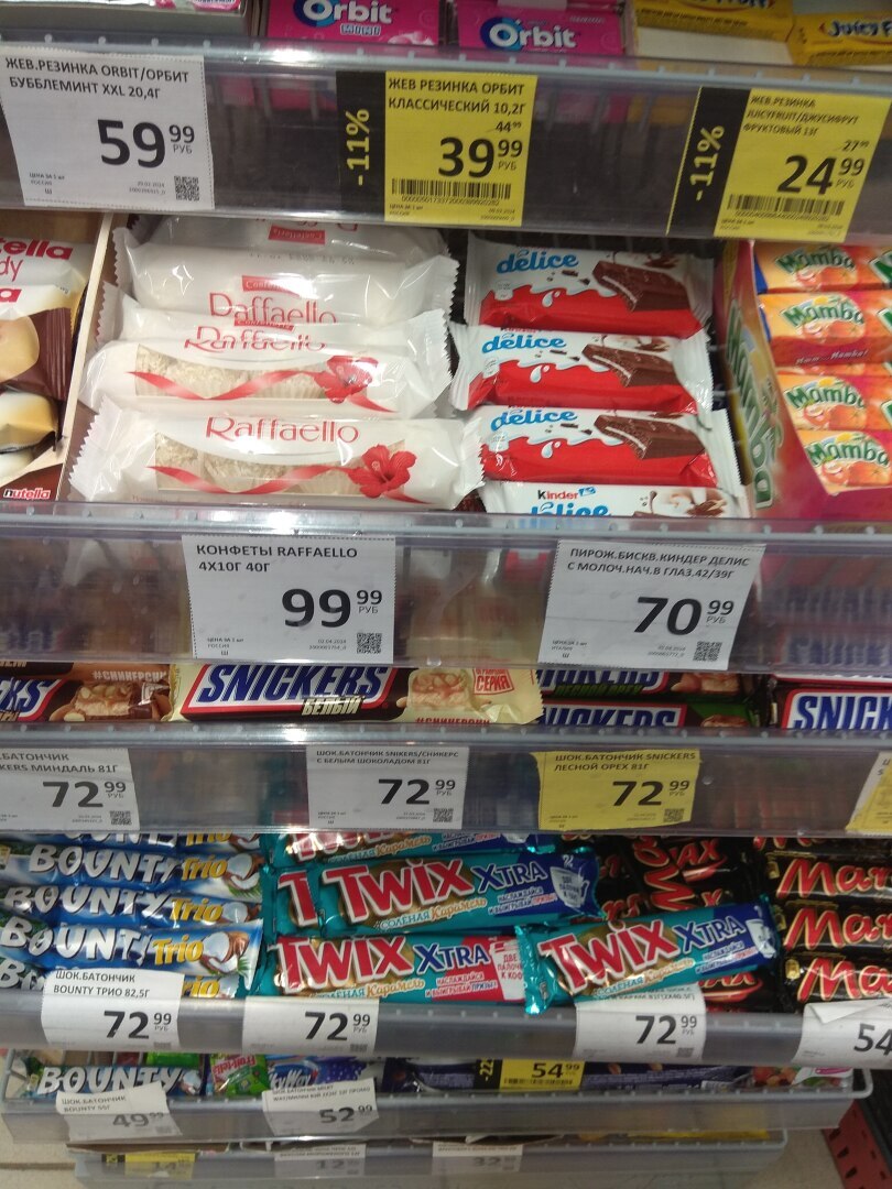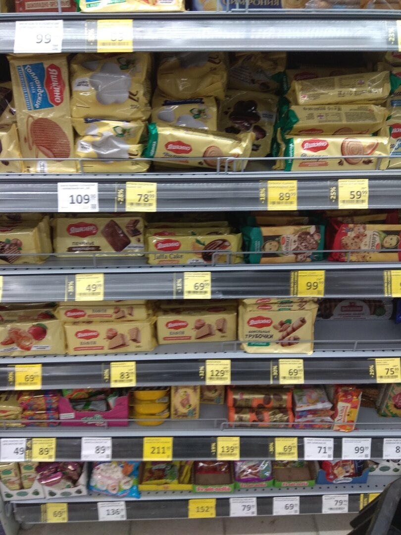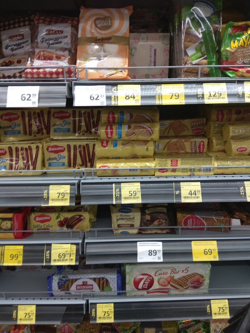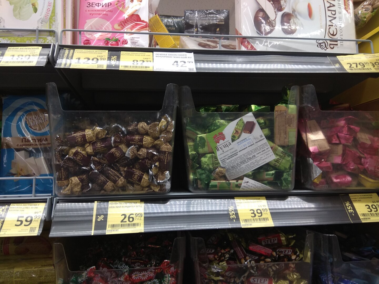 Кстати, в этом замечательном магазине есть и хорошие акции. Иногда я покупаю сладости как раз по акции. Все другие продукты я покупаю по обычной цене. Я никогда не слышала, чтобы сладкое было просрочено, мне лично не попадалось на глаза.