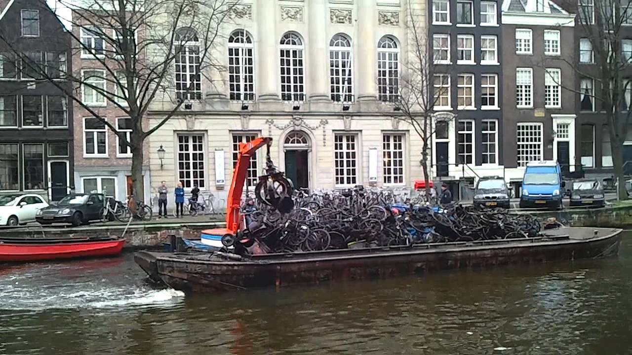 А такая профессия актуальна в Амстердаме. Из-за узких улочек и каналов, в Амстердаме перемещаются на велосипедах. Ну и те часто сваливаются в каналы. Примерно раз в месяц по каналам проплывает специальная техника, которая чистит водоёмы от мусора и велосипедов. Зарплата такого сотрудника 800-1500 $.