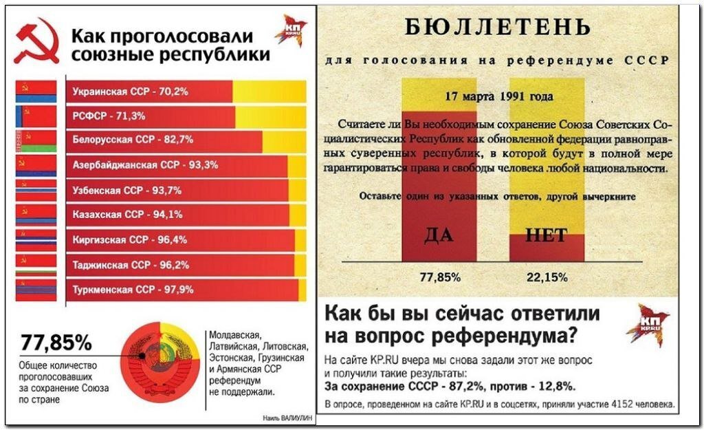 Просто вспомните как стоял вопрос. хотие ли вы , жить свободно и независимо, и трактовали, как желание жить свободно, как отделение от СССР