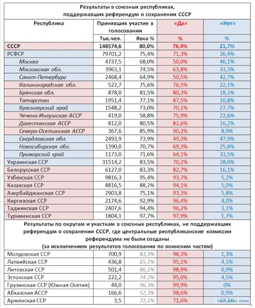 Плохо что комменты пишут совершенно не образованные и не знающие истории индивидуумы. Просветись, девочка, а ещё и с образованием, чему вас учили в ВУЗАХ, наверное либералы врали вам в наглую? Народ единодушно проголосовал ЗА сохранение СССР, учись лучше, детка.