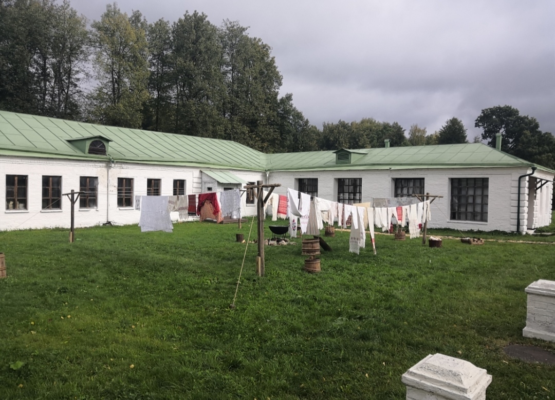 Усадьба находится недалеко от города Зеленоград. В усадьбу приезжают централизованные автобусные экскурсии. А мы вообще попали на съёмки фильма "Угрюм-река". Поэтому на территории усадьбы были декорации.