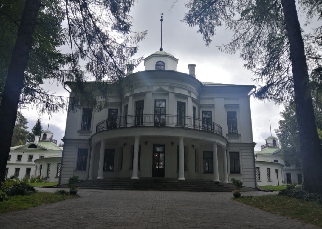 Местами реально похоже на дворцы Санкт-Петербурга и Ленинградской области. Свежий воздух, потому что кругом сосны и рядом военный санаторий, с территории которого можно выйти прямо в парк усадьбы. Вот в таком санатории я бы согласилась отдохнуть.