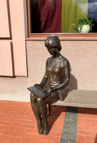 А после экскурсии мы заехали на главную пешеходную улицу Рязани Почтовую. Там недалеко скульптура девушки.