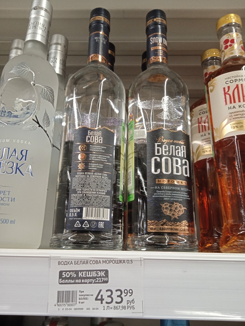 При покупке водки "Белая сова" с морошкой и на северном меду, на карту лояльности магазина "Атак" прилетит кешбэк в 50% от цены, указанной на ценнике.