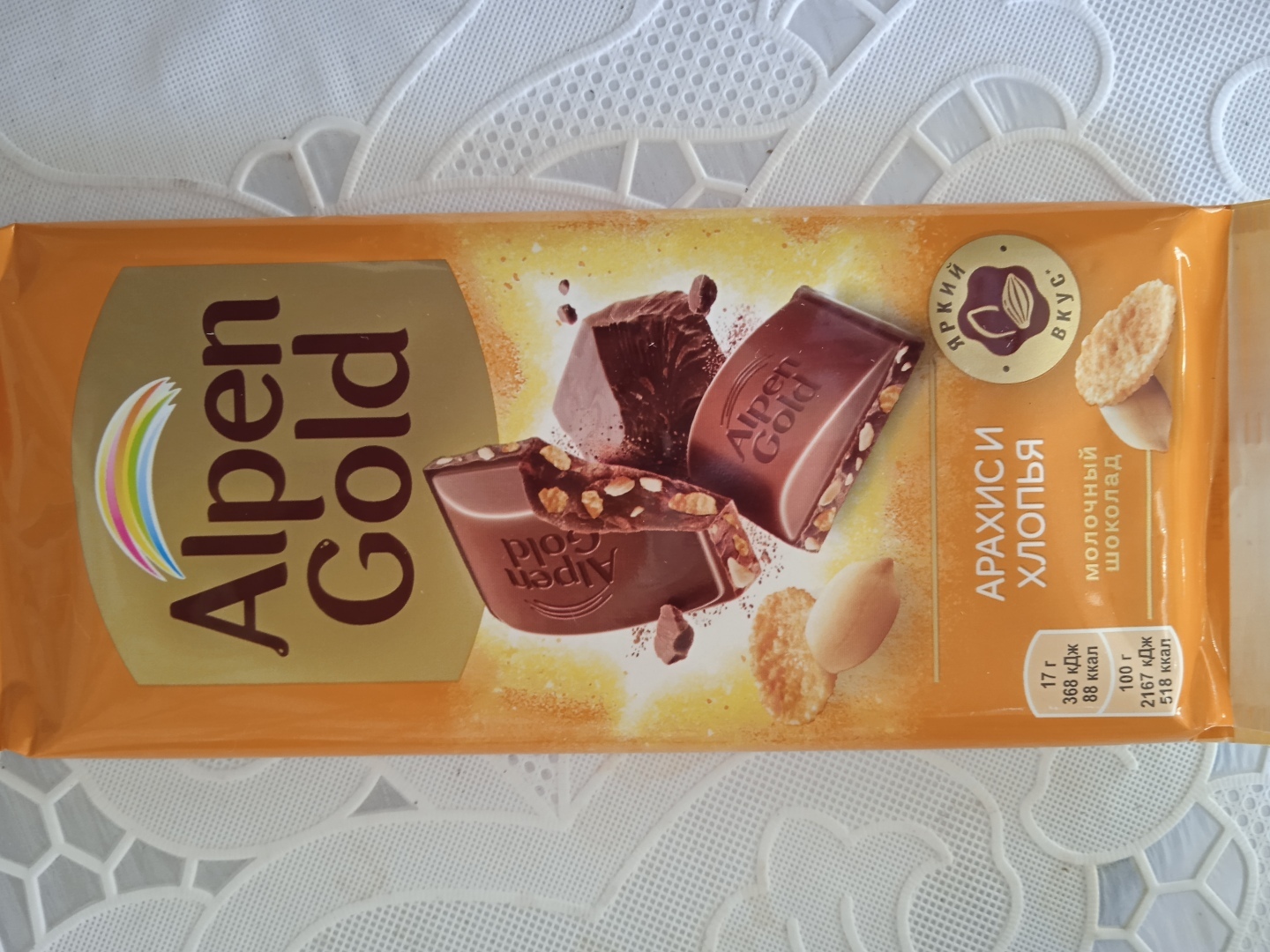 Шоколадка Alpen Gold с арахисом и хлопьями – 18 копеек.
