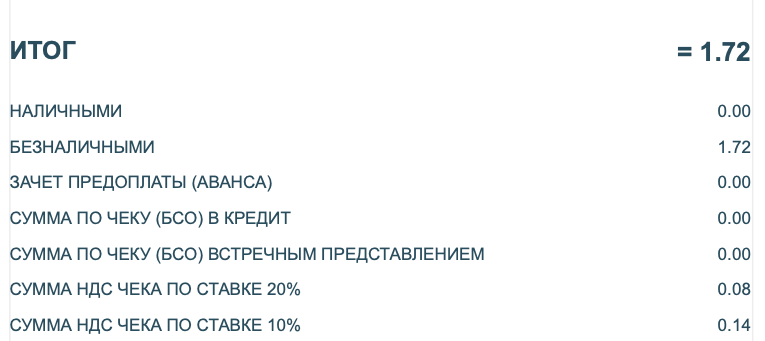 ИТОГОВАЯ СУММА – 1,72 рубля.