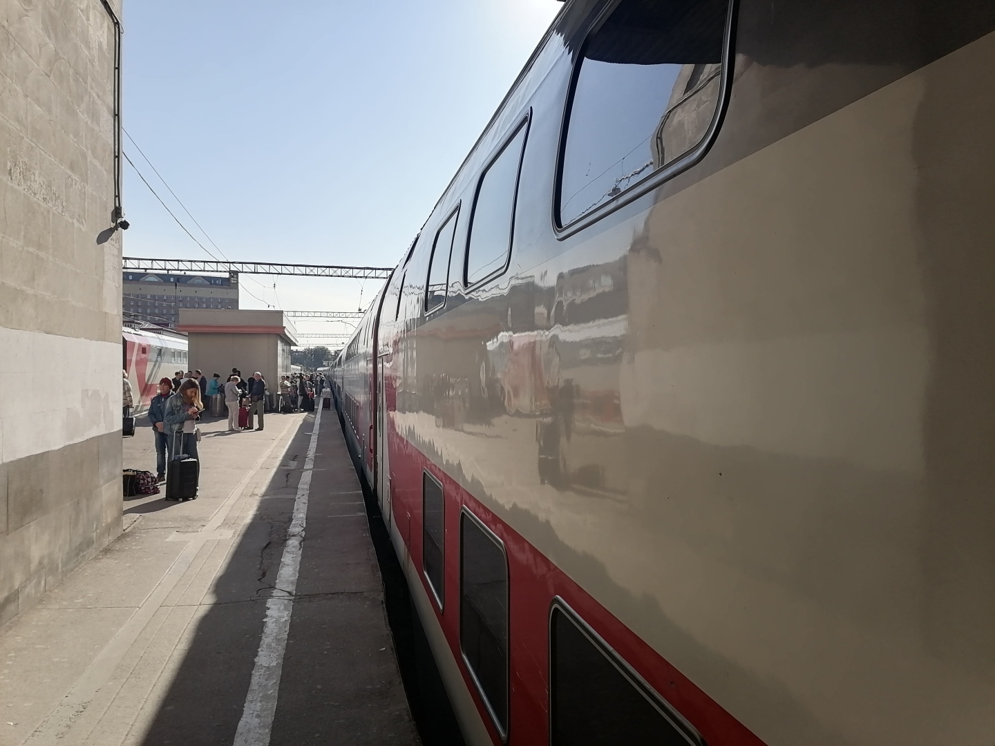Добравшись до вокзала, оказалось, что центральных вход закрыт из за ремонта и нам пришлось обходить целый круг, чтобы попасть на перроне к поезда. На перроне нас уже ожидал двухэтажный "красавчик".