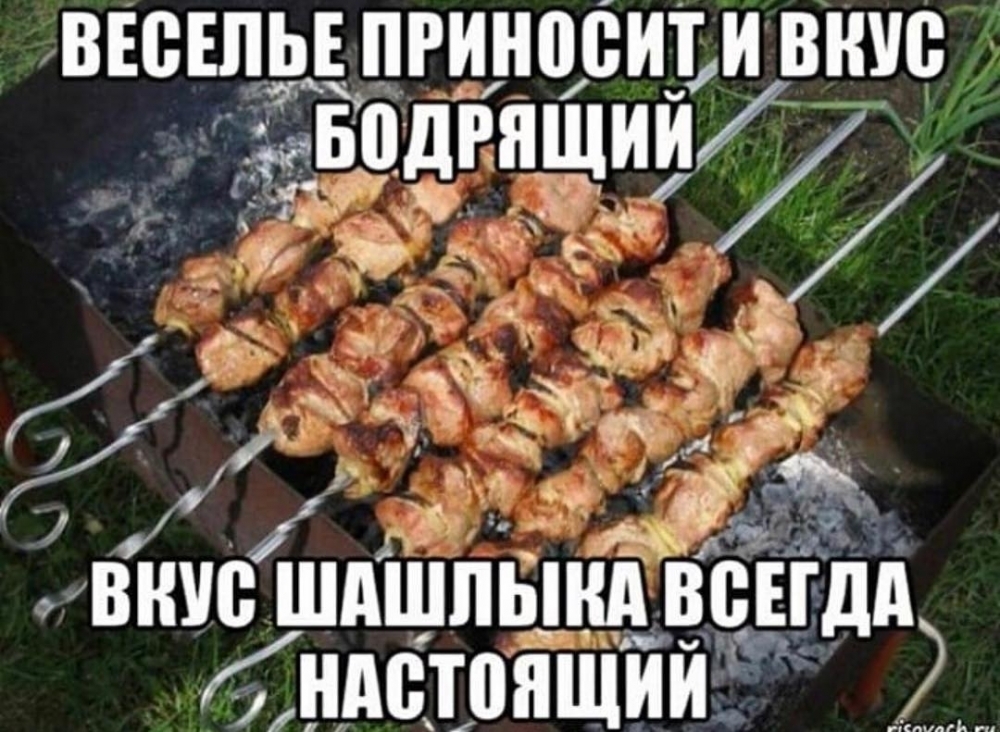 В ее голове возникают яркие образы: сочные кусочки мяса на шампурах, ароматный дымок, звуки веселой компании и запах горящего угля. Она представляет себя в окружении друзей, которые смеются и шутят, наслаждаясь вкусной едой и приятной компанией.
