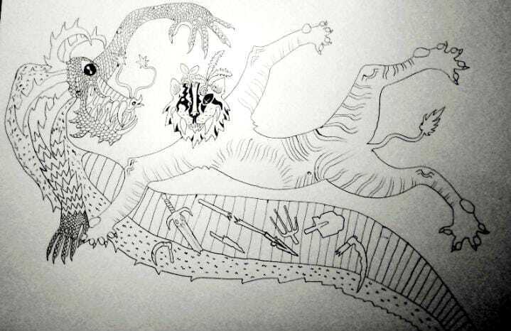 Когда солнце заходит за небосвод, в мире воцаряется покой, ничего не происходит в темноте, так как в темноте всё спит, всё да не всё. Великий дракон каждую 🌃 открывает глаза черные как бездна, да пускается по небу темному, терпеливо дракон гуляет каждую ночь, да сбрасывает на землю оружие всех видов, старое и молодое, так бы и ходили люди с каменными топорами, если бы не великий дракон. Как то уранил дракон на землю гирю железную 40 кг. Да угодила гиря прямо в лоб тигру, что 400 лет как спал, порос тигр сорной травой, да мхами с лишайниками. Пробудился тигр от сна вечного, открыл глаза полны ярости неудержимой, стал рвать и метать всё что под лапу подвернётся. Эх, ты тигр невоспитанный! Возмутился 🐉 Зачем рушишь постройки людские, не затем я столько лет в их мир оружие поставлял!