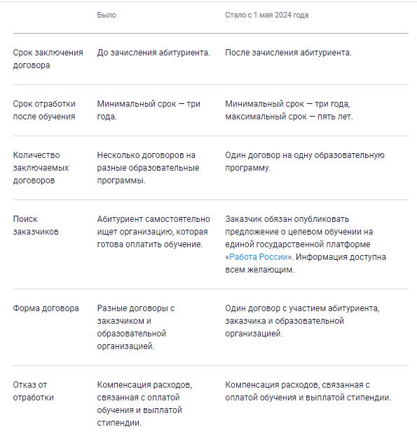 Как изменится целевое обучение с 1 мая: таблица