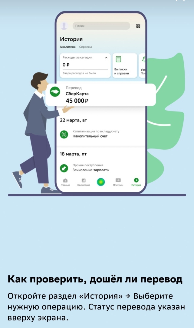 Сбербанк: полезные карточки для проведения переводов; услуга уведомлений.
