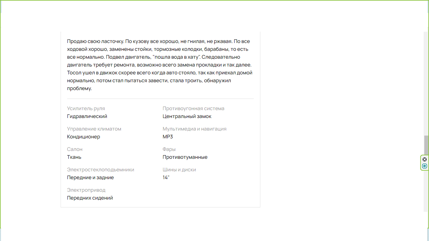 Ко всему прочему после покупки я вложил в неё 70 000 рублей, заменив сразу масло, ГРМ, подремонтировав ходовую, заменив стойки, тормозные колодки, глушитель, да и много чего еще.