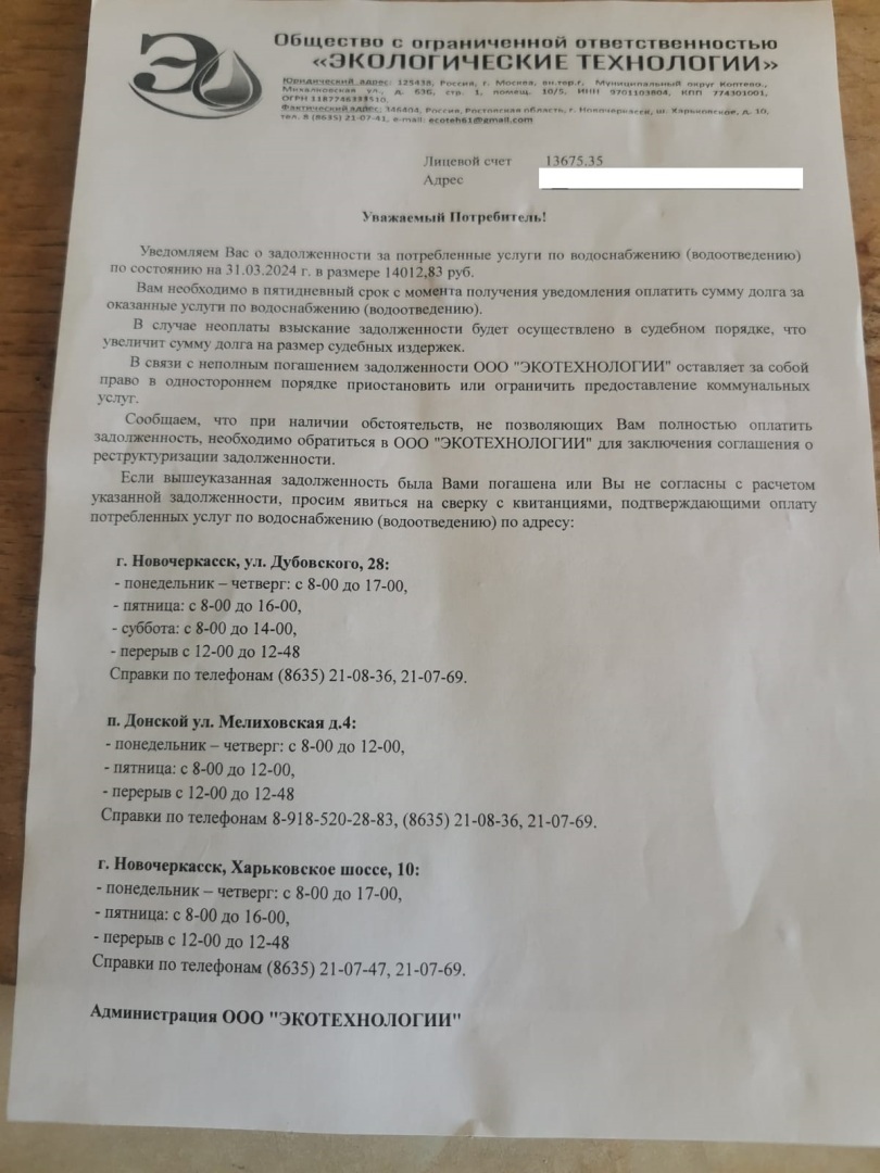 Хотят отключить свет и воду за чужие долги по ЖКХ. Мое обращение в Администрацию