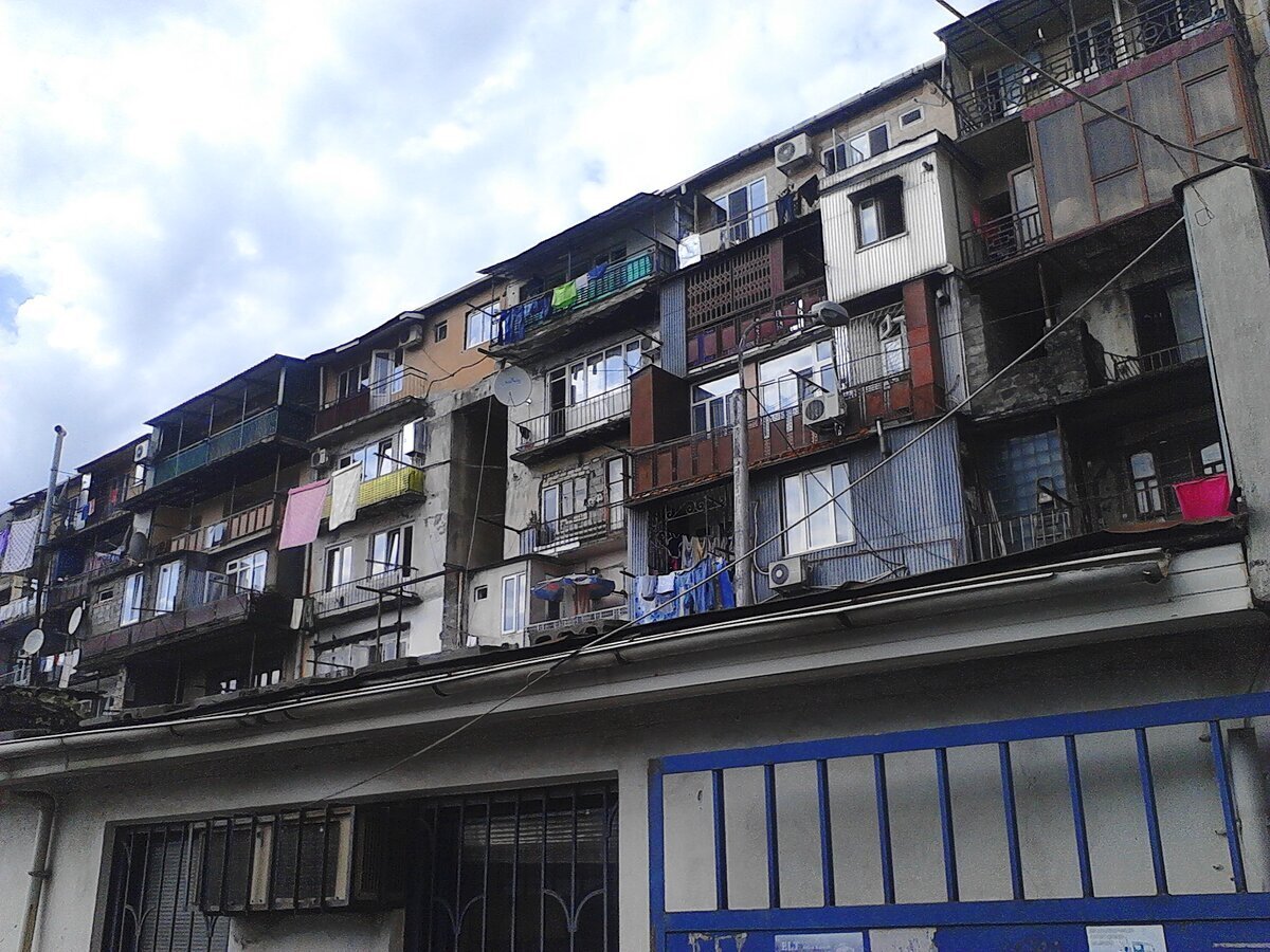 Такие балконы с флагами из белья я наблюдала и в Армении, и в Италии.Правда труб буржуек не видела.