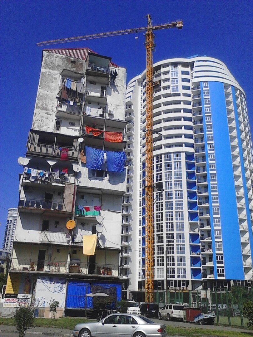 Потом посадил нас в свой мерс и повез в центр города, попутно показывая и рассказывая о достопримечательностях. А посмотреть там реально есть на что. Поразило одно, что небольшой городок, Батуми, удивил обилием стилей в архитектуре. Здесь можно на одной улице встретить и обычные "хрущевки"(созерцать их это вообще песня, часами можно ходить по дворам), и огромные отели, и казино из стекла и бетона, и типичные европейские башни и крепости.