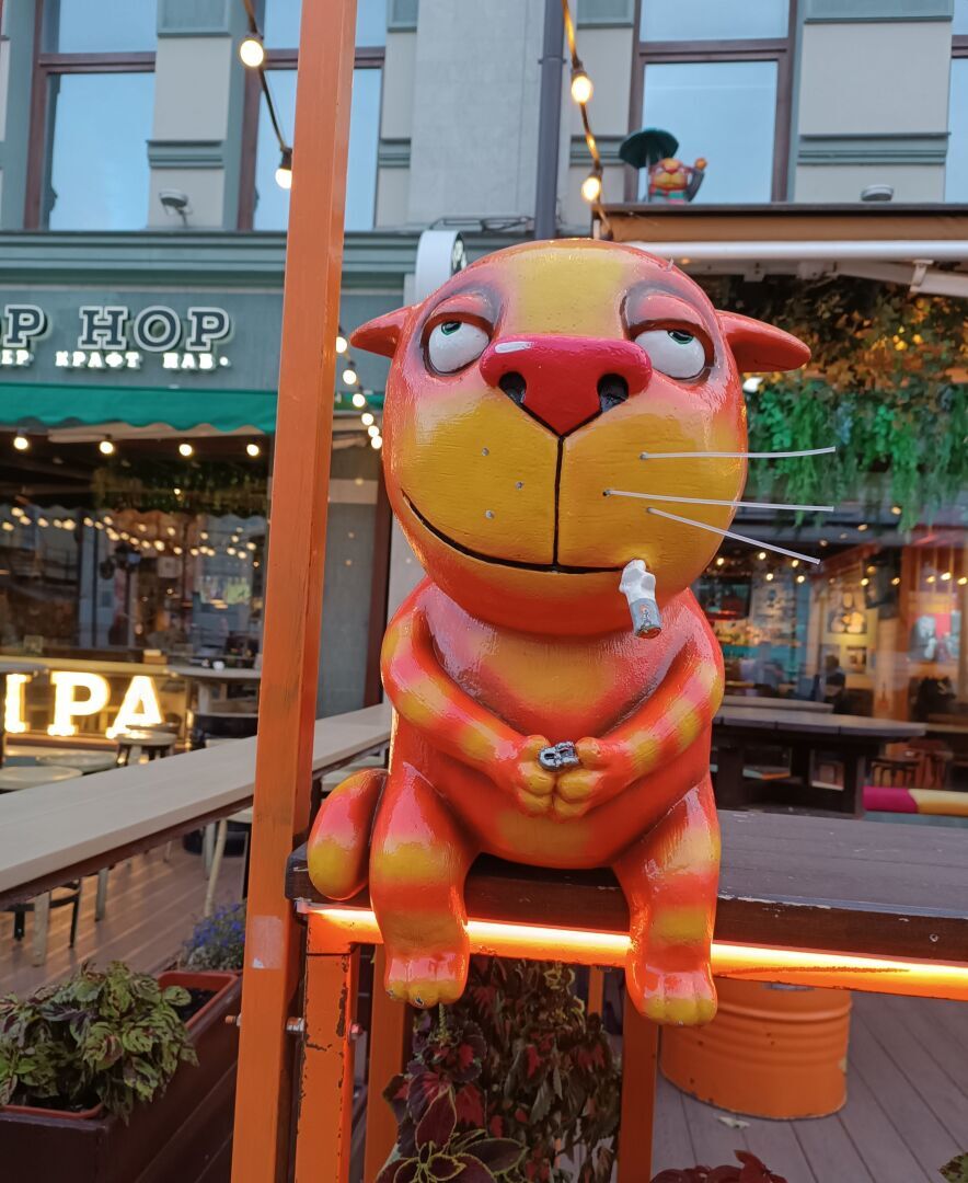 Множество котов нас встречало на улице, у магазинов, в магазинах, на парапетах. Сейчас покажу эти интересные фигуры.