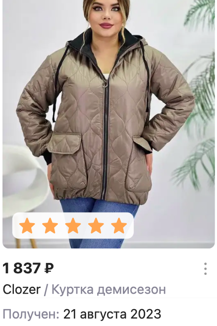 Куртку куплена опять на Wildberries. Любимый племянник Евгений оплатил мне как подарок ко Дню рождения. Получила именно 21 августа – в День своего рождения. Люблю и племянника, и эту шикарную куртку за очень приемлемую цену!