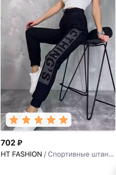 Купила себе на Wildberries почти даром спортивные брюки со стразами. Понимаю, что кто-то такие в жизнь не оденет! А я – легко! Пусть в лампасах у меня играет солнышко своими лучами, да свет ночных фонарей! Всё не так тускло и уныло будет. Особенно во время дождя!