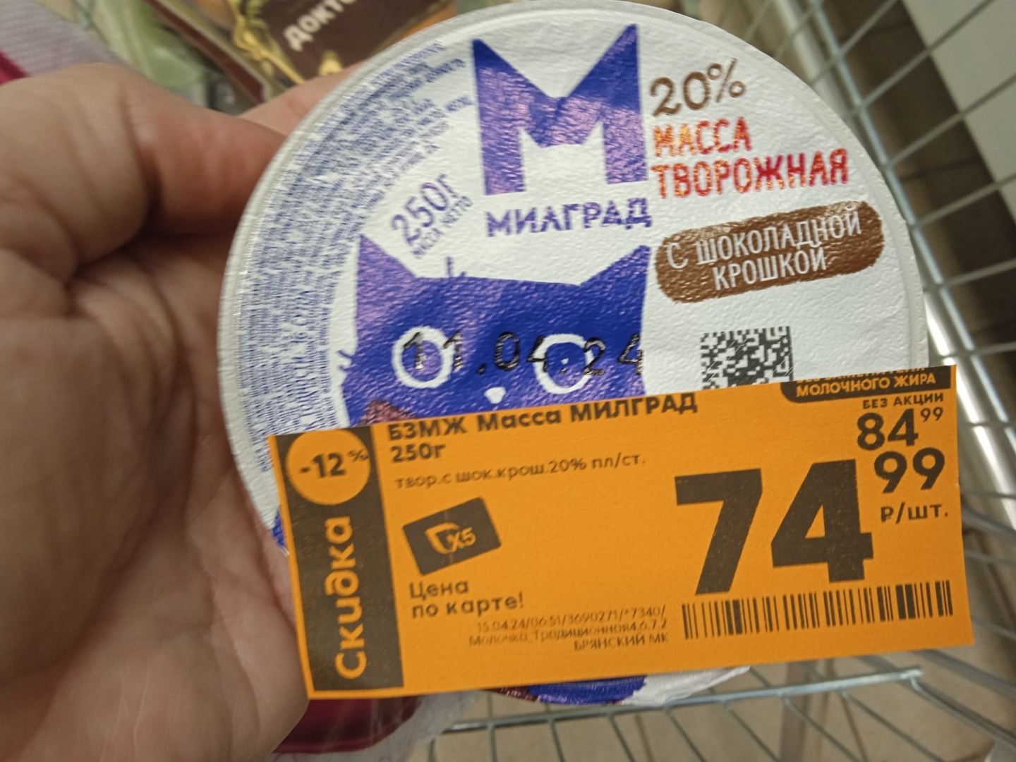 Впервые увидела в "Пятёрочке" и творожную массу от "МИЛГРАД". Написано, что продукция без заменителя молочного жира. Цена также соблазнительна. Купила, попробовала дома, понравилось!
