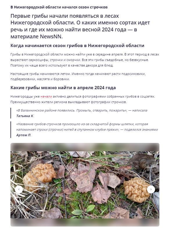 У нас в регионе открылся грибной сезон, и я не мог упустить возможность отправиться в лес на поиски самых ранних, весенних, вкуснейших грибов. Ведь как же не воспользоваться прекрасной новостью, которую я прочитал в одной из нижегородских газет. Но! У меня были и другие цели, набрать сосновые почки для целебного бальзама.