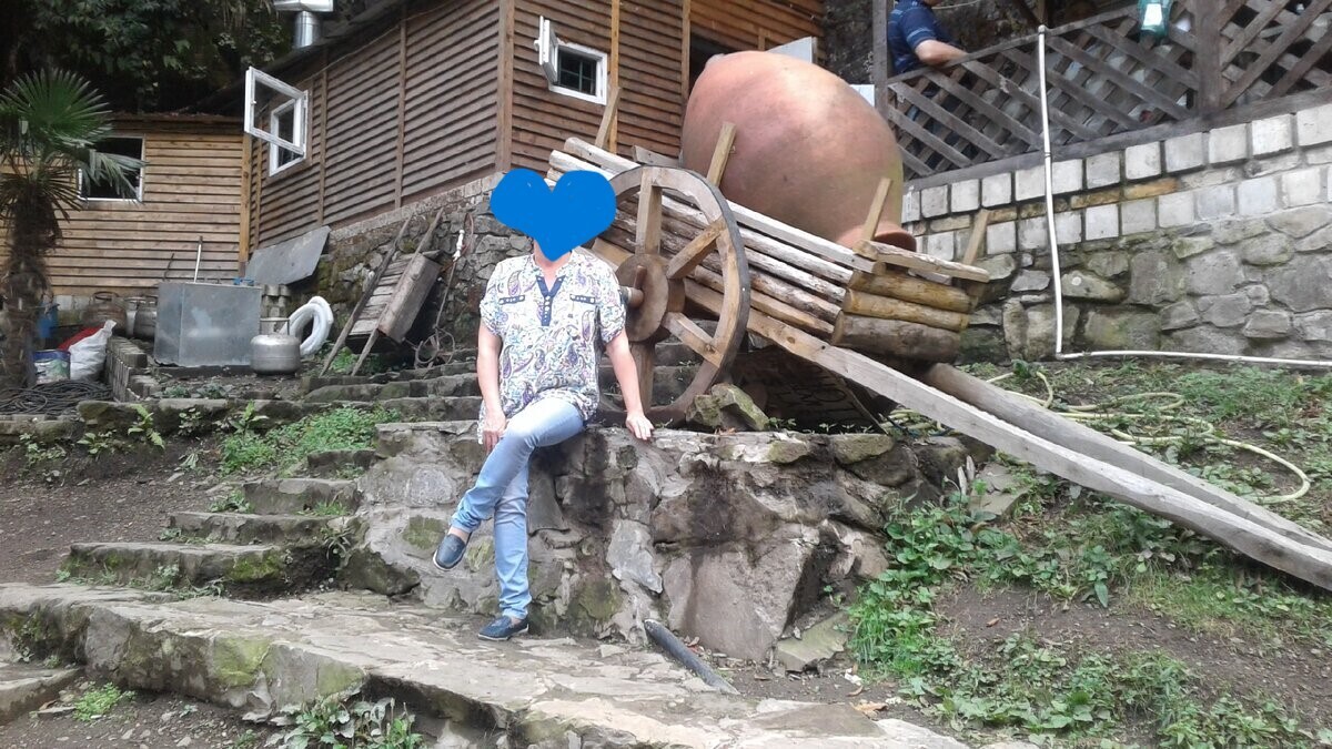 Самое удивительное было в доме. К нему пристроена крытая веранда, человек так на 40. Дубовые столы и лавки, заставленные блюдами грузинской кухни. Было все: и супы, и рыба, и грибы, и мясо, и овощи, и зелень, конечно... Все обалденно вкусно... Все по - домашнему. Во главе стола сидел хозяин дома, встретивший две группы туристов (около 30 человек), рассказавший о каждом блюде, а еще наливал всем на пробу свое домашнее вино. Красного напитка было сортов 7-8... Я не такой гурман и знаток винишка, но вкус чачи я оценила!!! Только уже в домашней обстановке. Вкусно!😋