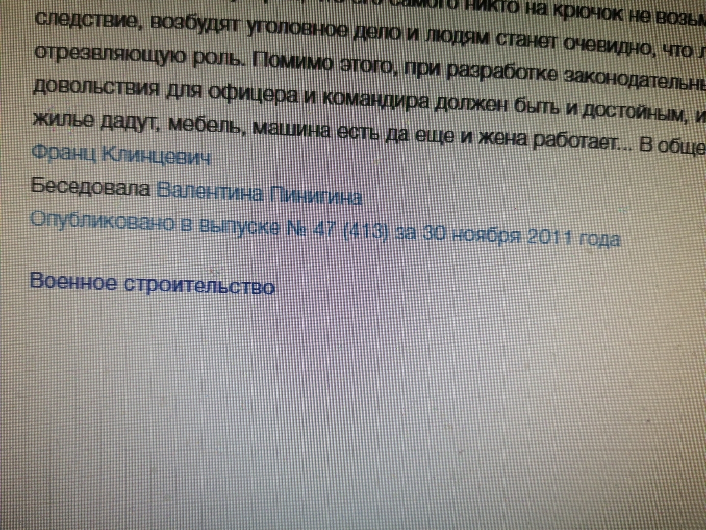 Я всегда публиковалась с девичьей фамилией, В низу статьи будет ссылка на ВПК, где опубликован мой текст беседы с Францем Клинцевичем.