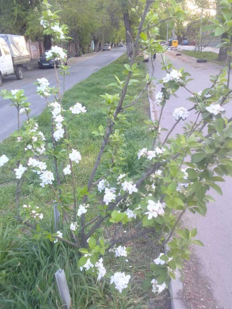 А еще расцвела маленькая яблонька, растущая возле двора. Это деревце посадила наша соседка.