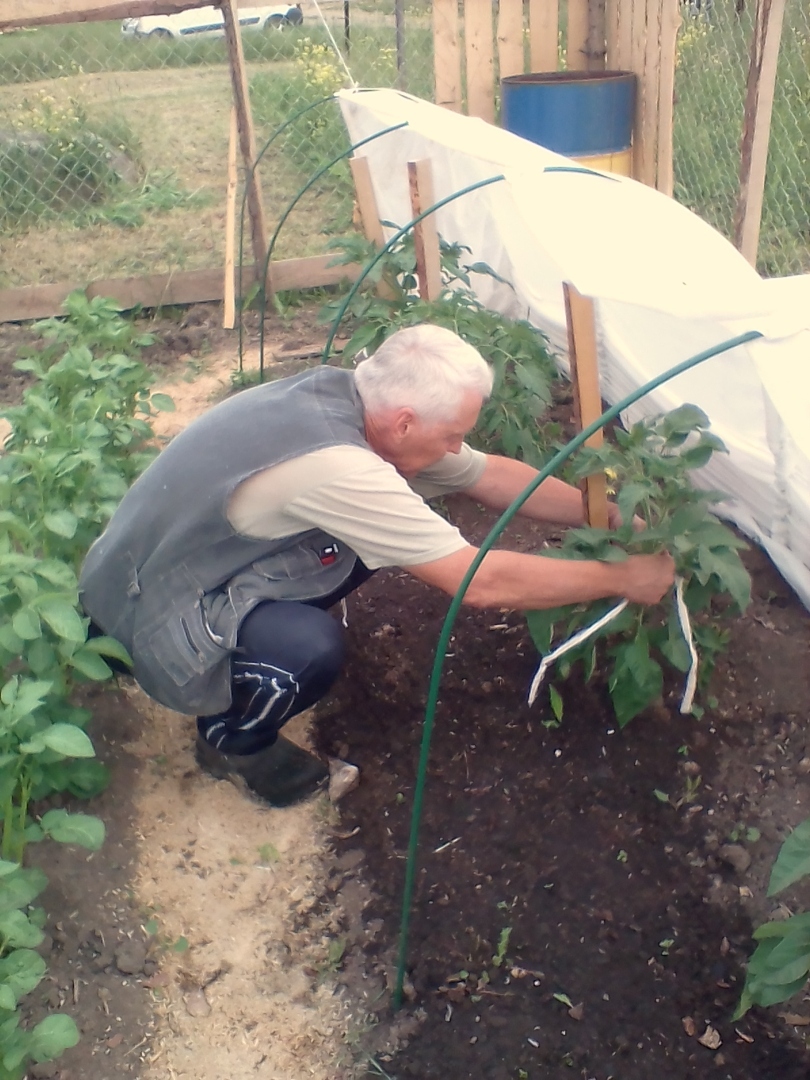 Сначала построил забор. Калиточка получилась такая уютная, деревенская! Потом Иваныч грядки сделал, в первый год у нас росла только зелень - укропчик немножечко, петрушка, салат.