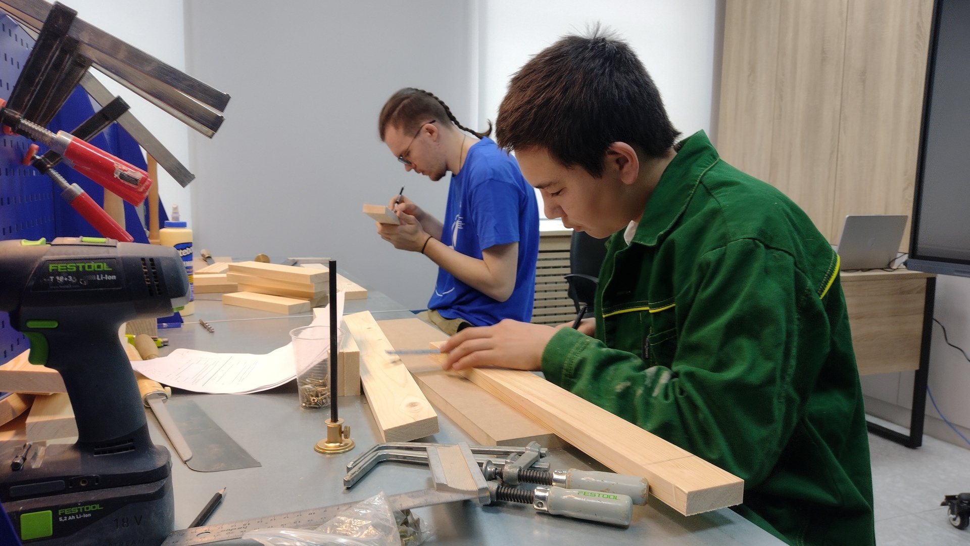 В этот же день, сразу после церемонии открытия, мы разошлись по площадкам, на которых и проходили наши компетенции. Мой сын принимал участие в этом году в компетенции "Столярное Дело"