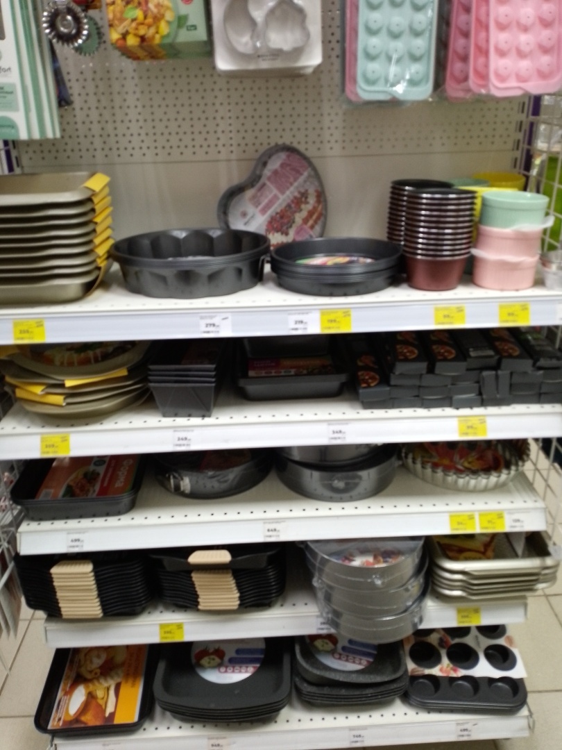 В наличии имеются кастрюли, сковороды, формы для выпечки, тарелки, чашки, кружки, столовые приборы и многое другое.