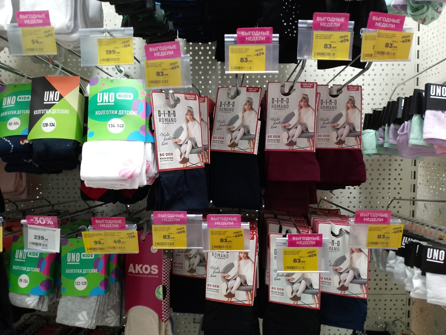 На различные колготки тоже идет скидка, но не такая огромная, как на носки.