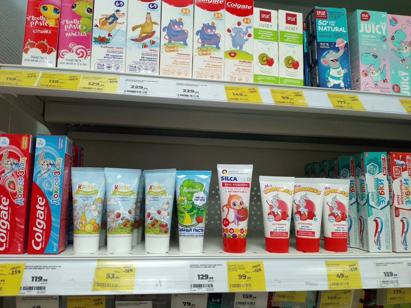 Действуют хорошие скидки на детские зубные пасты. Очень важно заботиться о здоровье зубов с самого раннего возраста.