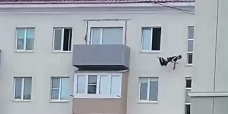 Прибывшие на место экстренные службы растянули под окном спасательное полотно.РЕН ТВ