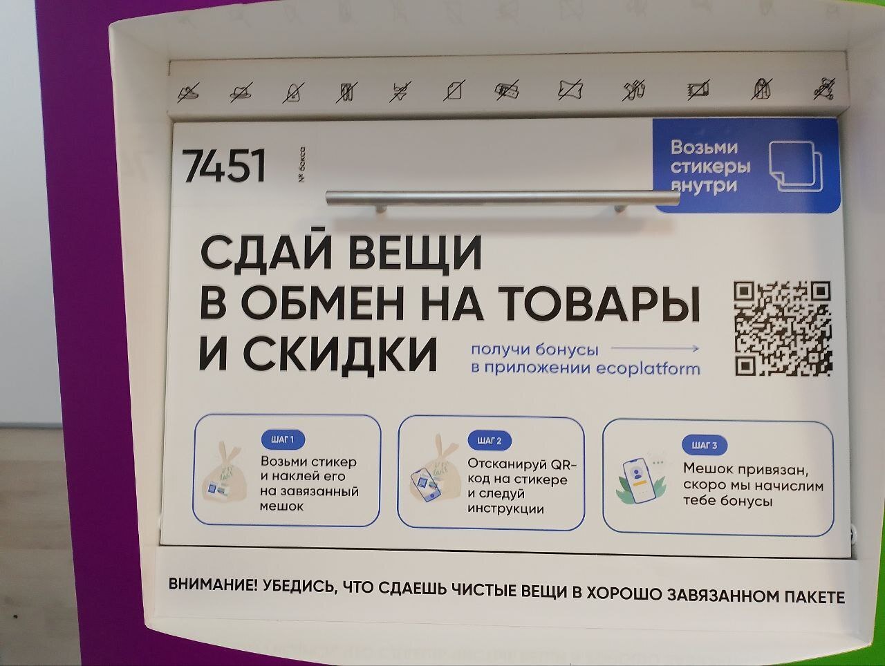 В ответ за вашу ненужную одежду вы получаете приятные бонусы. Например, это могут быть баллы на карту Тройка или скидки в магазине Дикси. Что вам выгоднее, то вы и выбираете. Хотя, конечно, начисляются копейки, но между тем, люди в течении дня приходят и какие-то вещи сдают. Значит в этом есть все таки смысл. Как говорится - мелочь, а приятно.