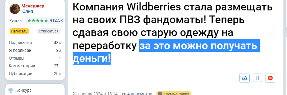 Компания Wildberries стала размещать на своих ПВЗ фандоматы! Теперь сдавая свою старую одежду на переработку за это можно получать деньги!