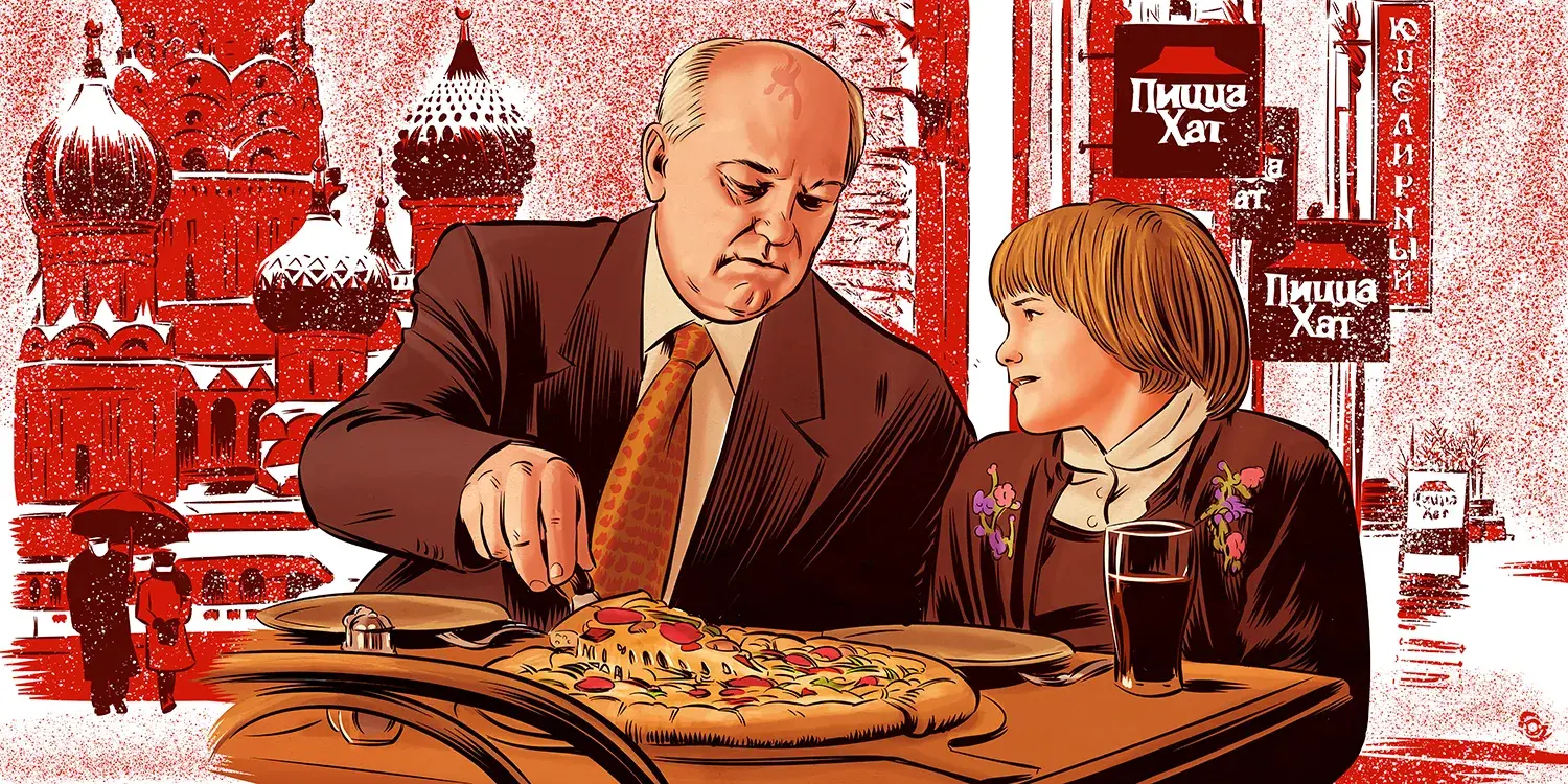 "Эта реклама появилась только потому, что компания Pizza Hut в 1990 году открыла недалеко от Красной площади свой первый ресторан и планировала дальнейшую экспансию рынка — речь шла о «сделке века» между руководством СССР и компанией PepsiCo (ей тогда принадлежала Pizza Hut) на сумму $3 миллиарда. Однако после развала Советского Союза рухнула и сделка, и экономика страны."