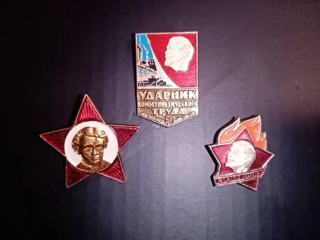 Сразу вспомнила про коллекцию значков. С Лениным нашла сразу три: октябрятский, пионерский и знак «Ударник коммунистического труда». Не нашла почему-то комсомольский значок, а ведь знаю, что у меня их целых два где-то лежат, надо будет потом найти.