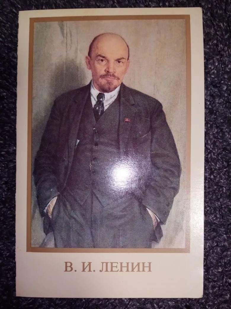 Затем мы с дочкой покопались в нашей коллекции марок и открыток. Нашли одну открытку и одну марку с Ильичём. Открытка художника И. Космина 1988 года выпуска.