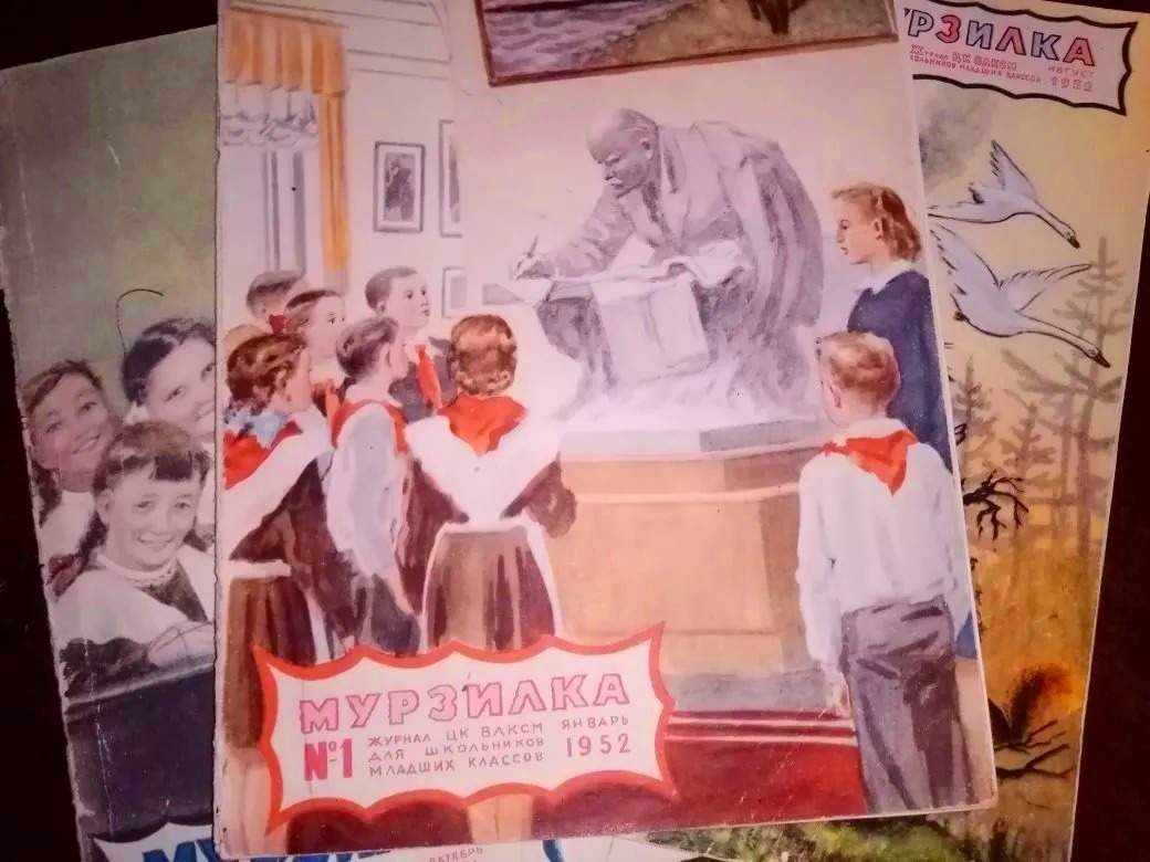 Там же, на антресолях, обнаружили несколько советских журналов «Мурзилка». Когда-то я принесла их из детского сада, в котором работала. Журналы эти нашли во время ремонта сада и собирались выбросить их на помойку. Мне стало жалко, и я забрала их себе. Это ведь настоящие раритеты! «Мурзилки» 1951-52 г.выпуска.