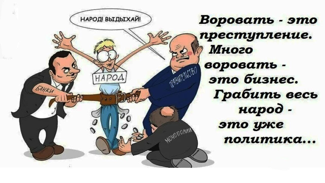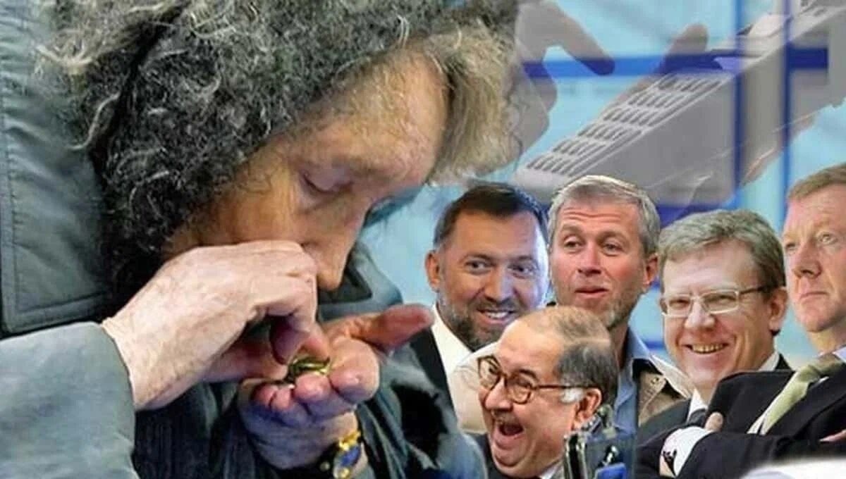 Всё богатство народа принадлежит кучке олигархов, которую поддерживает власть. В "богатом" государстве нищий, бесправный народ.